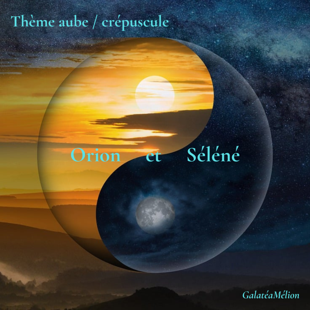 Gaïa, déesse mère, voyant les amoureux dépérir, leur a octroyé deux moments deux moments précieux où ils pourraient s’unir : l’aube et le crépuscule. Deux météores lumineux où jour et nuit se côtoient le temps que chacun laisse place à l’autre.