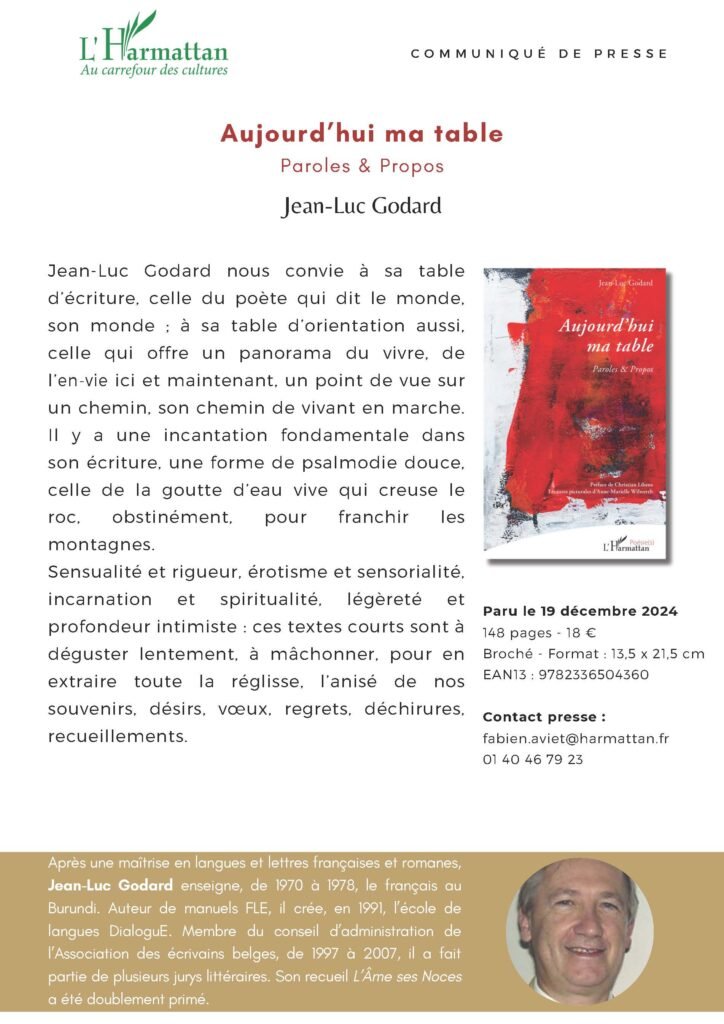 Après une maîtrise en langues et lettres françaises et romanes, Jean-Luc Godard enseigne, de 1970 à 1978, le français au Burundi. Auteur de manuels FLE, il crée, en 1991, l’école de langues DialoguE. Membre du conseil d’administration de l’Association des écrivains belges, de 1997 à 2007, il a fait partie de plusieurs jurys littéraires. Son recueil L’Âme ses Noces a été doublement primé.